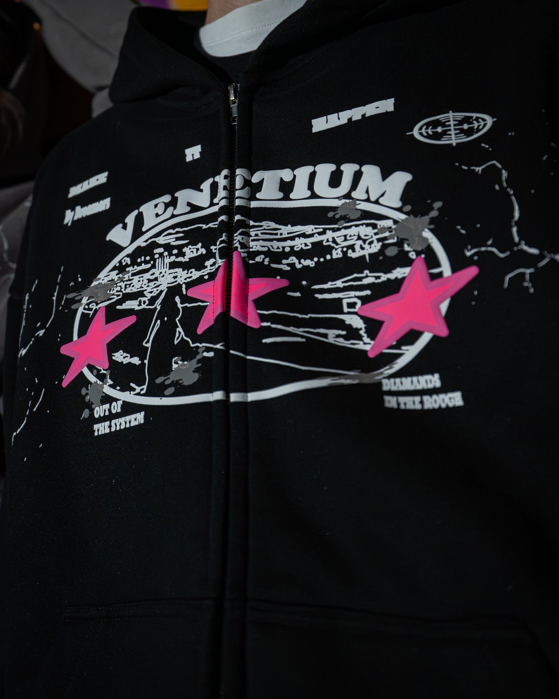 Star Zip-Up Hoodie Black